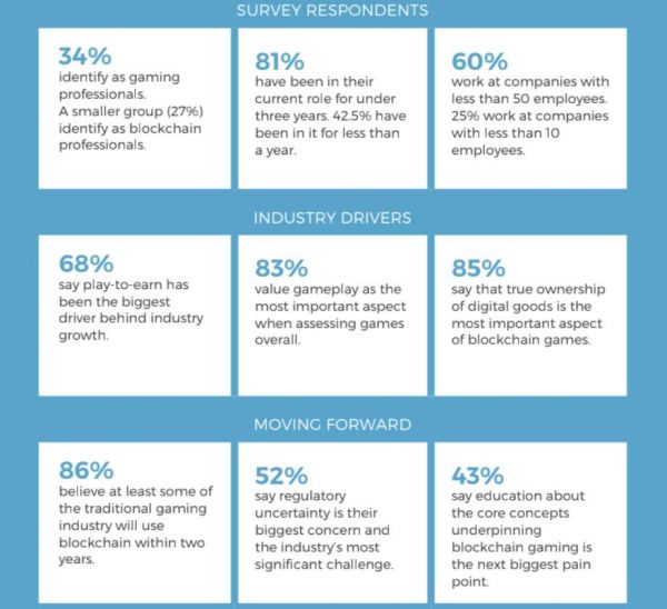 Borget说,“现在比以往任何时候都更重要的是,我们要动员起来与错误信息作斗争,填补人们对区块链游戏的知识空白。随着联盟数量今年翻倍,我们希望投入一些时间与我们的成员交流并且调查他们对于行业发展态势的看法。”
