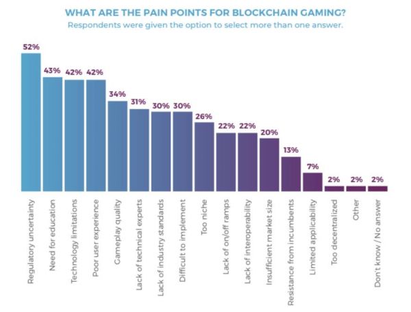 超过半数(52%)的受访者表示,监管不确定性是他们最担心的问题,也是区块链游戏行业最有压力的挑战。