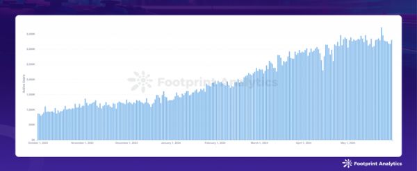 2024 年 5 月,以太坊的表现因 SEC 批准现货以太坊 ETF 的初步申请而得到显著提振。区块链游戏代币的总市值达到 201 亿美元,环比上涨 6.7%。然而,尽管市值有所增长,行业在用户参与度方面却经历了有趣的转变,交易量有所下滑,但每日活跃用户数量却创下新高。此外,迷你游戏和游戏 bots 的日益流行正逐步改变游戏行业的格局。