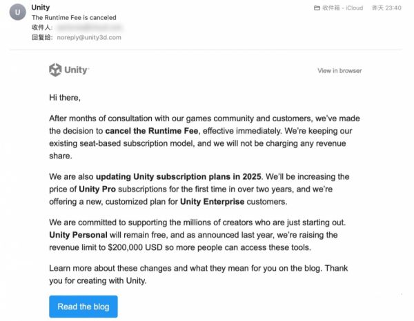 Unity幡然醒悟,取消运行费用,开发者的春天来了?