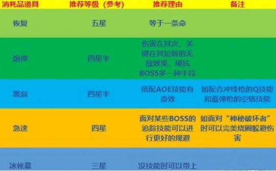 关于消耗品道具选择:在这次的无尽新挑战中,在游戏对局内为玩家们提供了5种消耗品道具,分别是:恢复、炮弹、急速、冰帐幕和黑洞。虽然这5种消耗品道具在游戏优先级上有所区别,但每一种消耗品道具都是有其妙用的,而且有的看起来没多大作用的消耗品道具反而是冲击无尽高阶段获提升无尽挑战游戏效率的关键所在。
