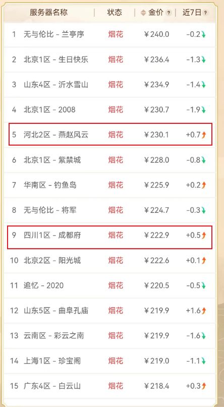 根据梦幻西游最新金价排行,这里推荐【成都府】、【燕赵风云】,这个两个区不仅比例高,而且也是69聚集地,所以很容易购买到69性价比角色、宝宝以及70级装备。