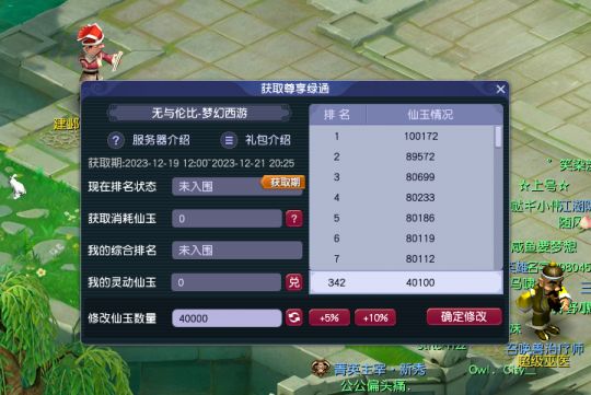 二、尊享绿通排位已到342位,10W仙玉暂居排行榜第一