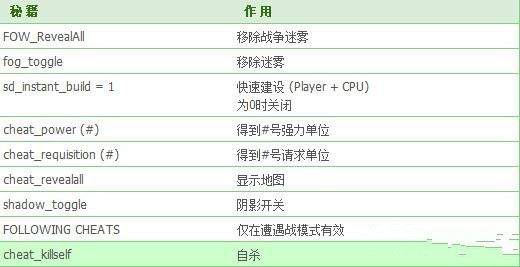 更多秘籍:首先要在遭遇战的选项中钩上"Allow Cheats" 。