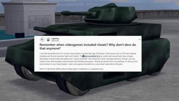 针对上述的现象,有些老玩家表示不能理解,一位叫“SlashCo80”的玩家就发文询问:大家还记得游戏里有秘籍的时候吗?为何如今的开发商不再这样做了呢?他表示游戏里的秘籍代码非常有趣且疯狂,可以让自己没有顾忌的探索和玩耍,如果能让玩家玩得开心,似乎没有理由要在单机游戏中去限制玩家的游玩方式呀!