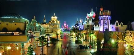 遮掩不住的绿意、随风起舞的树影、奇思妙想的雕塑。每处景致都在极力烘托各区域的主题特色。漫步在嬉戏谷,收获的不仅是自然的灵感、生活的情趣,更有让人禁不住会心微笑的细节和不经意间心灵的震撼。最美不胜收的乐园中心的“精灵湖”,湖中挺立着一座精致典雅、风格独特的“神秘之岛”,湖岛相连,脉脉依依,给人以无尽想象,续写着不朽的浪漫传奇,夜晚。彩色喷泉与夜色相交,体现出与自然景色不一样的美-------科技美。