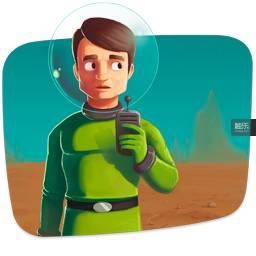 游戏中最明显的复古未来主义风格,就是在它的图标中也显示出来的,宇航服的设计。这种套上一个球形的透明头罩,加上紧身衣风格的,有一条黑色腰带的太空服(它还是绿色的!)都是那个年代的特征。