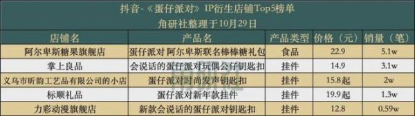 而《蛋仔派对》在抖音商城的IP衍生品,销量TOP5的产品类型主要是食品和挂件。这款上榜TOP1的食品,是“蛋仔派对x阿尔卑斯”联名糖果礼包。其店铺出售商品销量达5.1w斤,回头客达上千人,近1个月内更是超3000人购买,好评如潮,销量尤为突出。