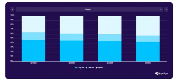 此外,超休闲游戏和中重度游戏均出现向休闲游戏转型的趋势。随着策略的改变,游戏的变现模式也由单纯的 IAP 和 IAA 转向混合变现,引领了一波全新的潮流。
