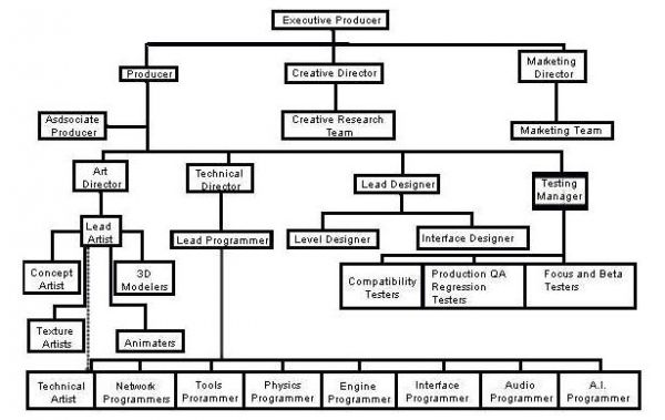 下图是某国外游戏研发团队的组织架构图,可以参考了解一下。
