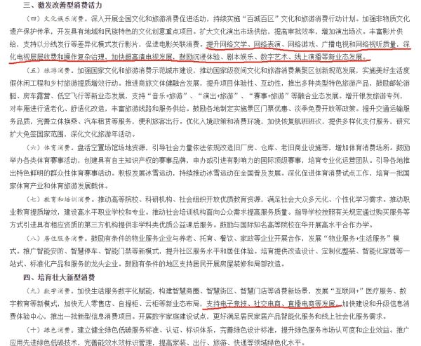 另一个特别值得注意的,是意见中的第四部分,第9项指出,“支持电子竞技、社交电商、直播电商等发展。”