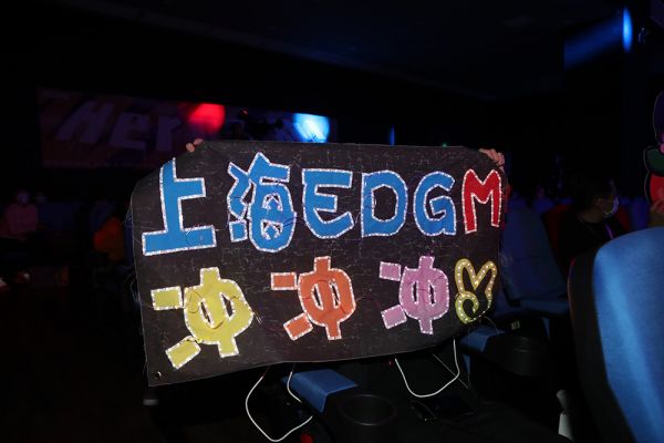 2020年10月23日,江苏南京,2020年KPL秋季赛常规赛现场,粉丝为EDG.M战队做的应援灯牌。IC 图