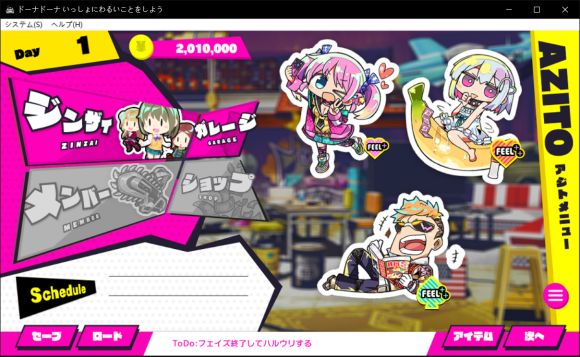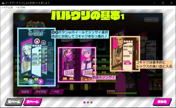 DAY 1,没什么好说的,选一个人物加完好感之后点【次へ】进接客教程