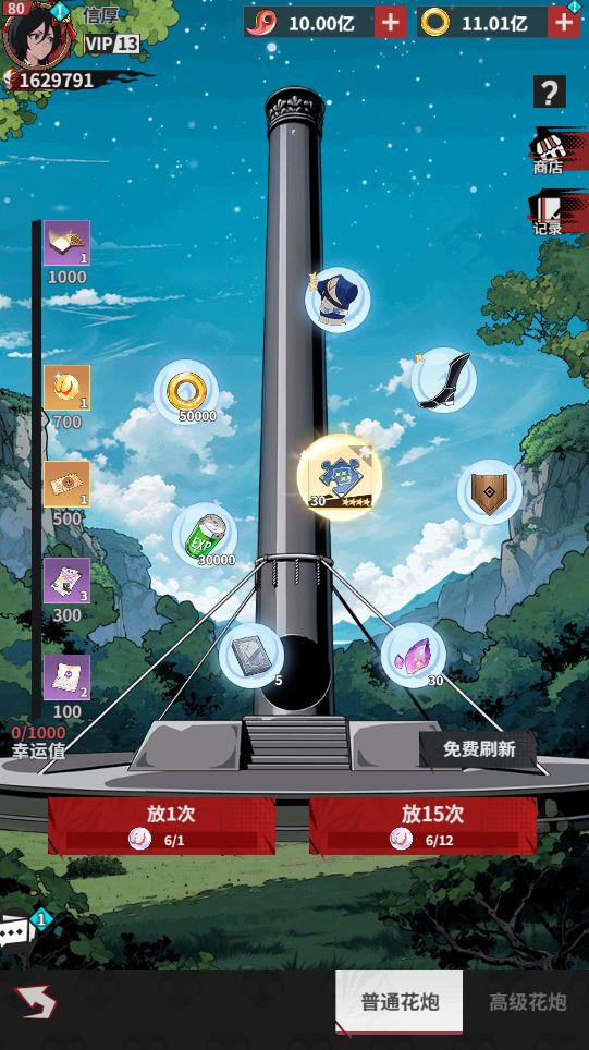 每次进行普通或高级花炮,均可获得“花鹤纪念币”,可使用纪念币在商城进行道具兑换。