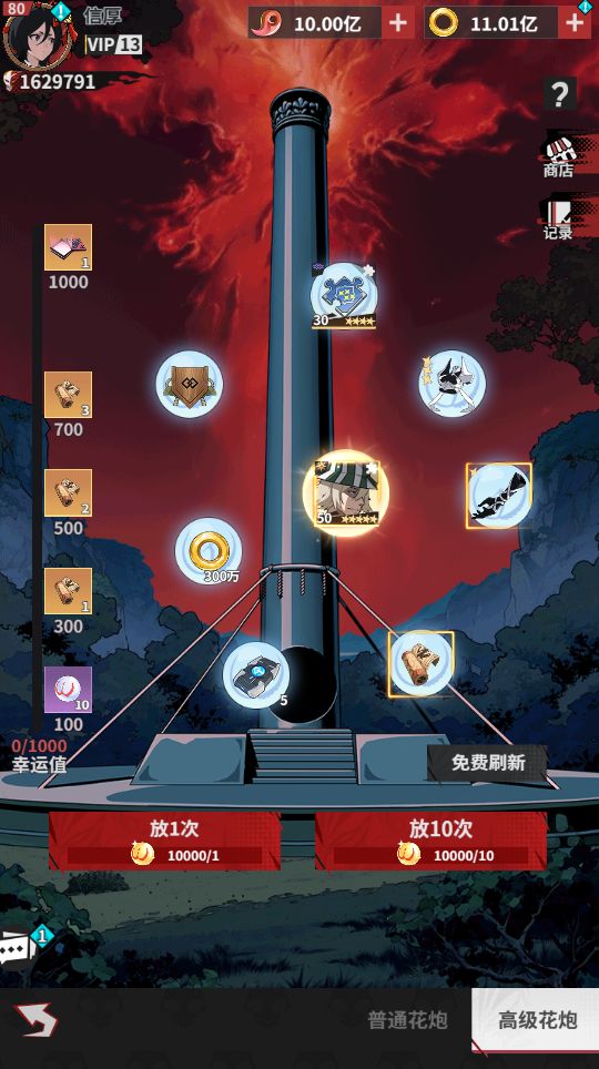 花鹤大炮为抽取材料功能,分别有“普通花炮”和“高级花炮”两种抽取形式,分别使用不同的材料进行抽取。