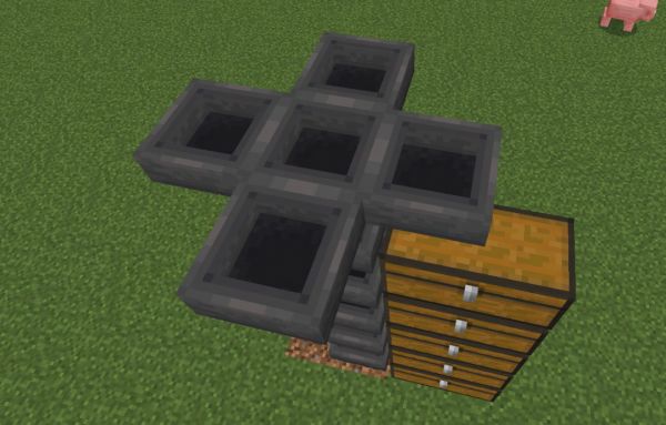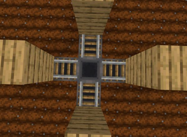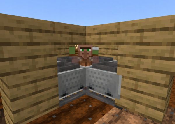记得要在漏斗矿车的四个角上放置半砖,防止村村越狱!