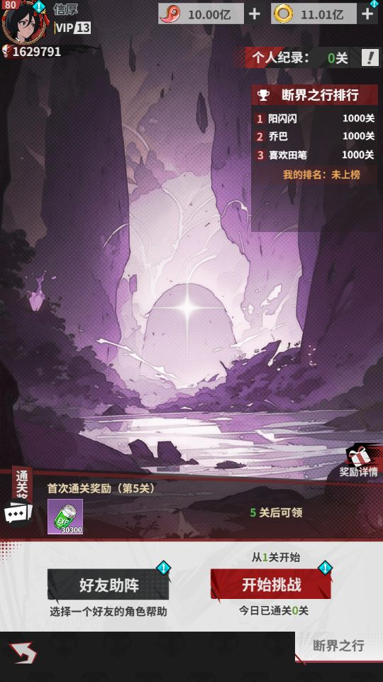 试炼之地的断界之行为持续闯关系统,点击开始挑战后自行挑战,到战斗失败后会停止。