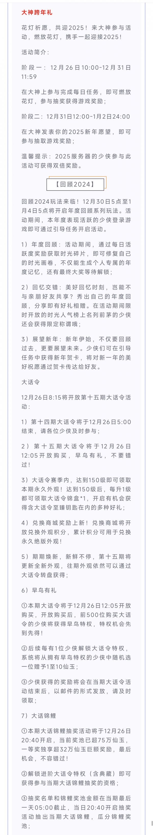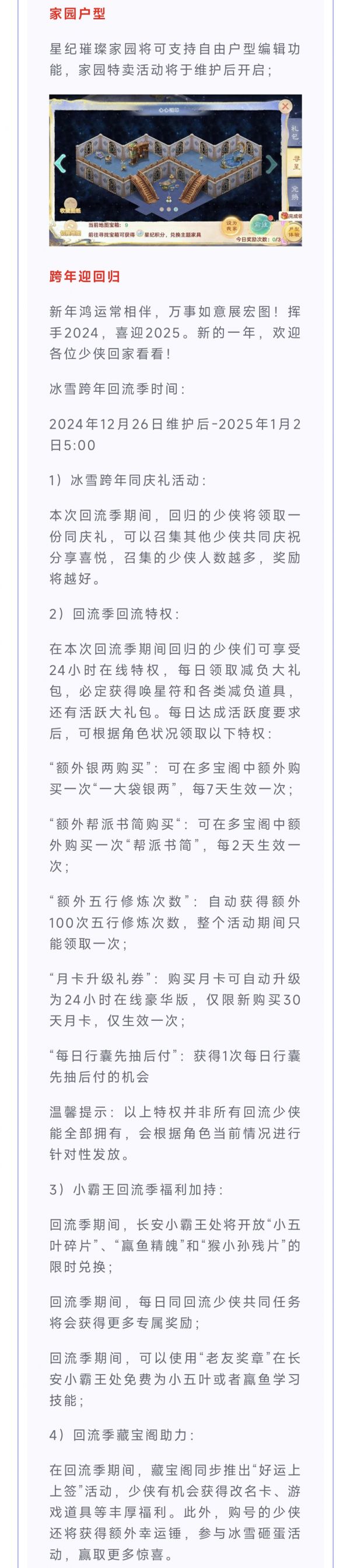 活动时间:2024年12月19日维护后-2025年1月6日5:00;