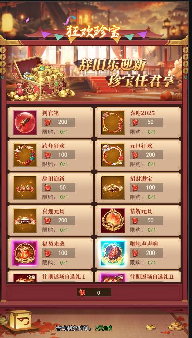 活动期间通过庆典烟花可以兑换头像框·元旦狂欢、大将军魂、自选6星粉装、顶级灵石自选、无双龙威神驹等奖励