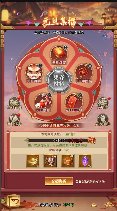 元旦礼包,腊八礼包购买通道限时开放,主公可购买不同档位的直购礼包。