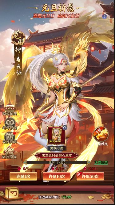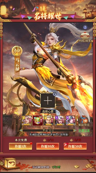 活动期间主公可通过名将玉佩进行抽取神·马云禄、神·陆逊、神·刘邦、魔·项羽等奖励