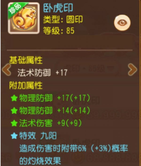 由于虎印的基础属性不包含法术伤害,因此法系门派在选择虎印时会更加注重附加属性词条和星盘特效。