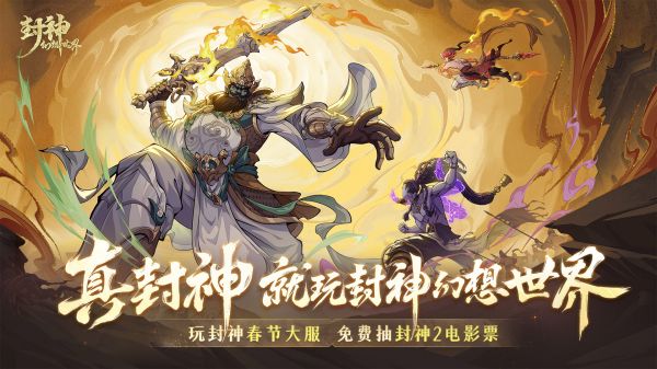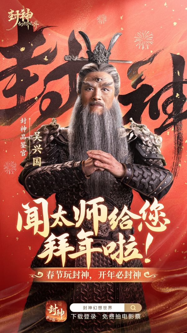 《封神幻想世界》春节人气大服开启!期待已久的新神兽、新伙伴、新时装、新光武、新玩法,一起来袭!玩封神手游,还有观影福利,参与社区活动即送《封神第二部》电影票,春节一起玩封神、看封神。更有封神电影原班明星代言,“闻太师”扮演者吴兴国作为封神品鉴官,号召天命之人集合春节服开战!