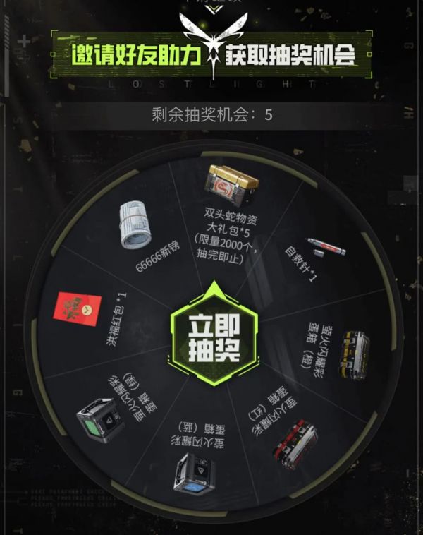 与自己的摸金好友一起分享你的年度总结时刻,还能获得抽奖机会,每天最多5次,有机会获得双头蛇物资大礼包、洪福红包、自救针、66666新镑!