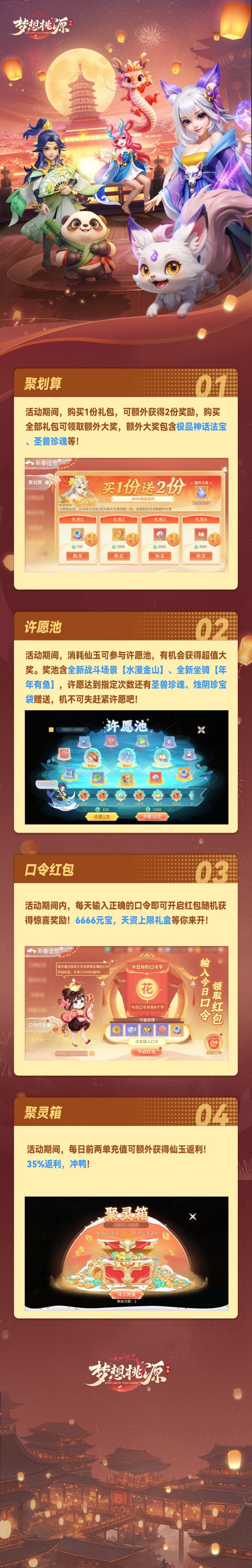 《梦想桃源》全新新春活动即将上线!口令红包,聚灵箱活动返场发福利,输入正确的红包口令即可开启随机惊喜礼包,6666元宝等你!