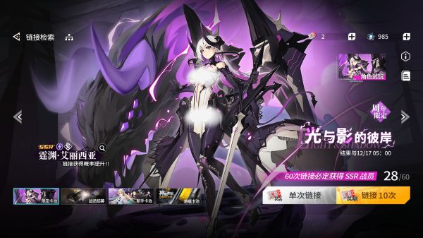 2.「光与影的彼岸」链接卡池「霆渊·艾丽西亚」UP链接概率提升,180次链接必得UP战员「霆渊·艾丽西亚」