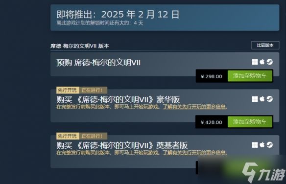 文明7发售时间是多久?文明7游戏发售日期为2月12日,玩家可以提前购入等待游戏开服,而如果是购入了豪华版或者奠基者版的玩家,则可以提前进入游戏进行游玩,接下来就让九游为大家带来文明7游戏发售日期介绍。
