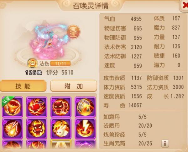 资质完美,颜值与实力并存,1556速度资质、959速度面板,不仅可以在对方攻宠出手前利用水无常形解决掉对手,还能在专属内丹雾起时的帮助下,概率躲避比自身速度慢的召唤灵的法术攻击,如此一攻一守、增益相辅相成,堪称完美搭配。