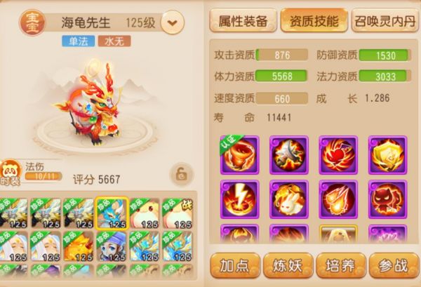 这只龙龟5568体力资质、1530防御资质、几乎极限的3033法力资质,在各项关键资质足够优秀的情况下,还做到了极致的龟速,660速度资质比肩龟速宠,这样一只生存能力拉满、伤害资质饱满的认证10技能水无常形龙龟,想必会受到所有神威少侠的喜爱。