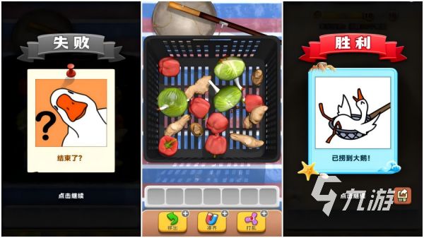 这款游戏的竞技方式由大家熟悉的羊了个羊为蓝本,诸位将从一个层层堆叠各种食物蔬果的框中,取出物品放置在游戏下方的七个槽位中,促使三个相同的即可完成消除。同时游戏独特的地方还在于各位可以通过摇晃手机促使框中物品晃动变更位置。珍贵的游戏方式充满了奇思妙想,推荐各位在此快乐抓大鹅。