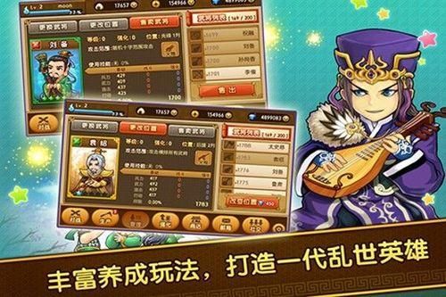 这是一款以三国历史为背景的卡牌游戏,玩家可以使用不同的名将卡牌,以增强自己的实力和夺取敌方城池和领地。该游戏的画面设计十分刻画细致,以及各种不同武将的特色设计,让人感受到了三国纷争的气息。