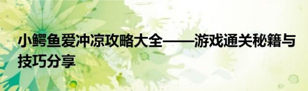 针对热门游戏“小鳄鱼爱冲凉”,本篇攻略将带你全面了解游戏玩法,掌握通关秘籍与技巧,让你轻松成为游戏高手。