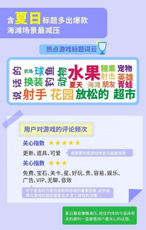 这些热门游戏中,含有“夏日”关键词的标题往往能诞生除更多爆款,海滩场景往往更减压。