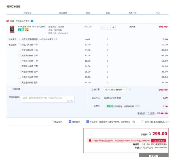 天猫商城 深乐电玩专营店 ,商品面价499元