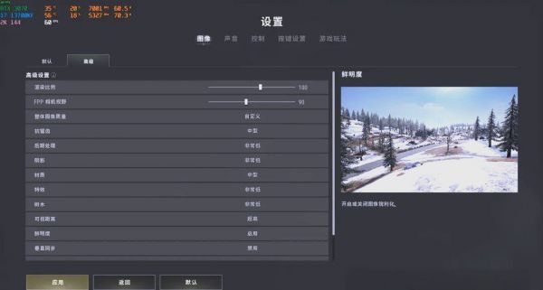 在游戏内设置中,我们可以对抗锯齿和材质进行选择,推荐设置为“中”。同时,将其他设置调整为“非常低”。此外,启用“鲜明度”设置,以提升游戏画面的清晰度。最后,在“设置-游戏玩法”中,我们可以进一步调整界面显示,以适应个人偏好和电脑性能。通过这些优化设置,我们可以有效提升游戏帧率,缓解卡顿现象。