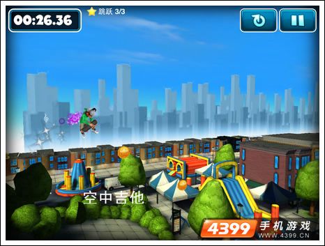 同样的也是需要一个向上的滑梯,然后向上滑动让人物跳起,接着载次向上滑动即可做出空中吉他步。