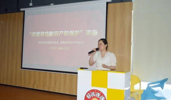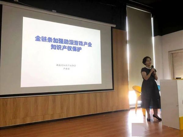 讲座由湖南省动漫游戏协会常务副会长兼秘书长杨春玉主持,杨春玉讲到知识产权对于从事动漫游戏作品创作者在内的版权权利人及使用者、传播者,意义重大。版权是支撑文化产业发展的灵魂与不竭动力。对动漫游戏作品给予版权的激励与保护,可以引导、鼓励更多优秀原创动漫作品的创作生产,推动动漫产业的繁荣发展。此次有幸请到行业内两位重量级专家学者为各企业授课,希望能让企业对知识产权有更加深刻的认识。