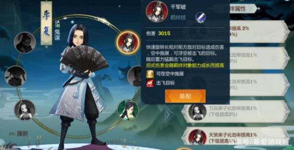 此时你换成李复,再来看羁绊技能,就会发现,天策给李复的羁绊技能是千军破,堪称互帮互助之典范!