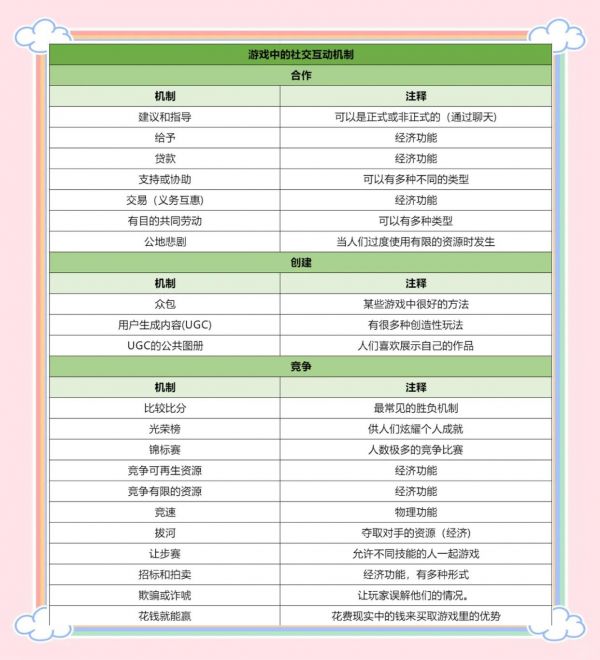 大多数游戏机制是直接或自适应型的,可以在Raph Koster的“社交游戏的社交机制”讲座中找到详细的讲解。这些机制不仅促进了游戏内的社交互动,还为玩家提供了更丰富的游戏体验。