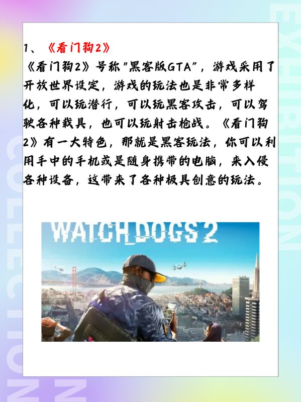 《看门狗2》号称“黑客版GTA”,游戏采用了开放世界设定,游戏的玩法也是非常多样化。