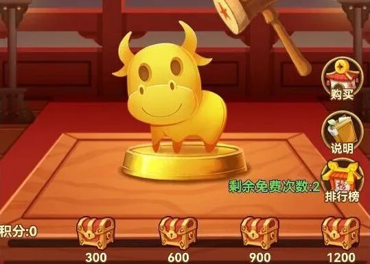 2、每次砸金牛,随机获得5积分,10积分,15积分,达到相应积分可以开启宝箱奖励;