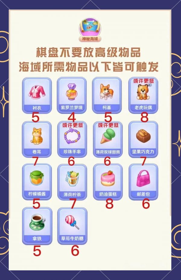 顶级物品包括冰激凌、蛋糕等(标有x3的物品),不同物品触发的订单等级也可能有所不同。