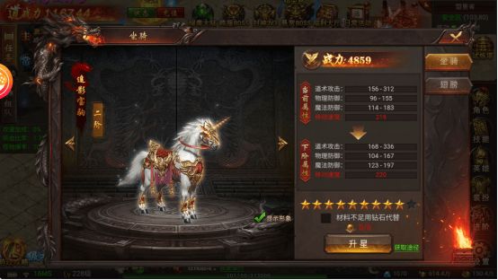 - 进阶系统:坐骑达到一定星级后可进阶,进一步提升品质和属性加成。