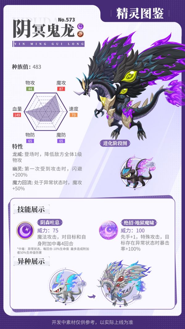 处于成长期的小龙都格外调皮活泼,阴冥龙相比其他小龙已经算比较安分守己的了。它平时喜欢自言自语,偶尔也会冒出几句小吐槽。