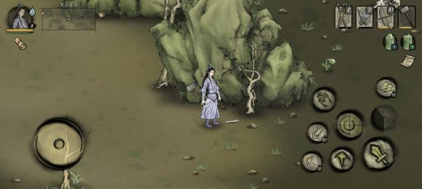 1、在离石柱东南方向不远处一座石山前会有一柄断剑,捡起来触发隐藏任务。