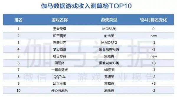 2019年5月,伽马数据测算榜TOP10中,前三甲产品均为腾讯研发或者发行,其中《王者荣耀》排名第一,新游《和平精英》与次新游《完美世界》分别居于二三。受此冲击,《梦幻西游》则排名第四,但长远来看,依靠其稳定性,《梦幻西游》排名有望恢复。
